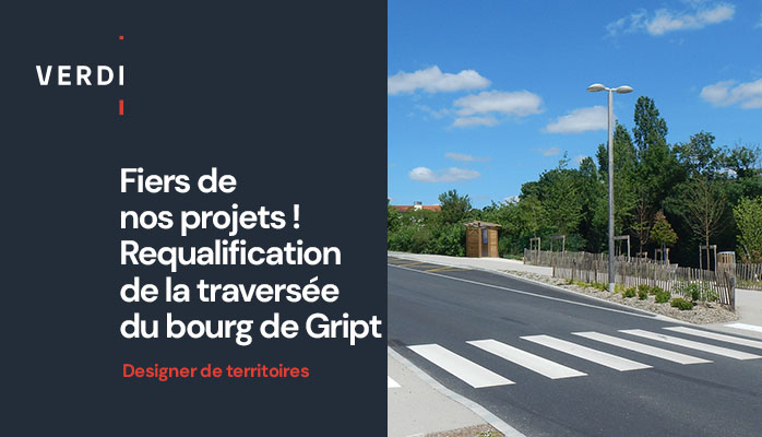 La commune a souhaité réaménager la route départementale qui traverse le bourg de Gript. Les objectifs ? Abaisser la vitesse sur cet axe circulant et donner de la visibilité à une vieille bâtisse pour développer un commerce de proximité.