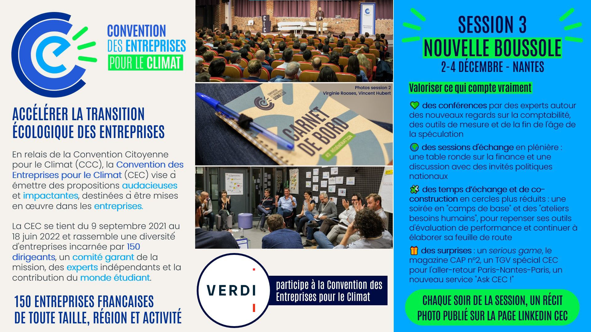 🔔 Chaque soir de la session 3, un récit photo est publié sur la page Linkedin de la Convention des Entreprises pour le Climat, abonnez-vous pour être informé !