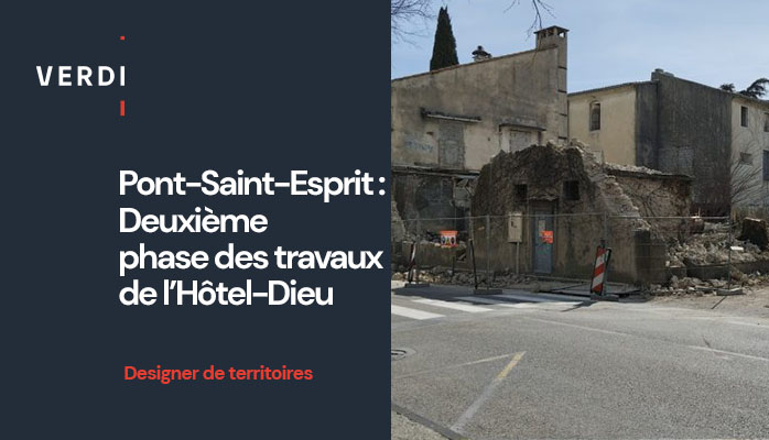Depuis le lundi 3 mars 2025, la deuxième phase des travaux de l'îlot Hôtel Dieu à Pont-Saint-Esprit a débuté.