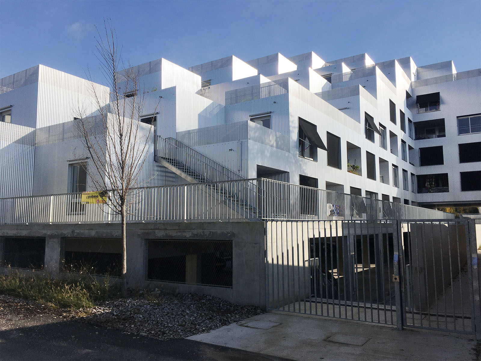 La Quadrata est une résidence de 40 logements sociaux bâtie à l’emplacement de l’ancienne cité du Soleil dans le nouvel éco-quartier Via Romana de Dijon. Construite en forme de L, ses deux ailes forment des gradins composés de volumes cubiques encastrés les uns aux autres. Ses façades extérieures sont parées d’une couverture en aluminium ondulé aux reflets argentés.