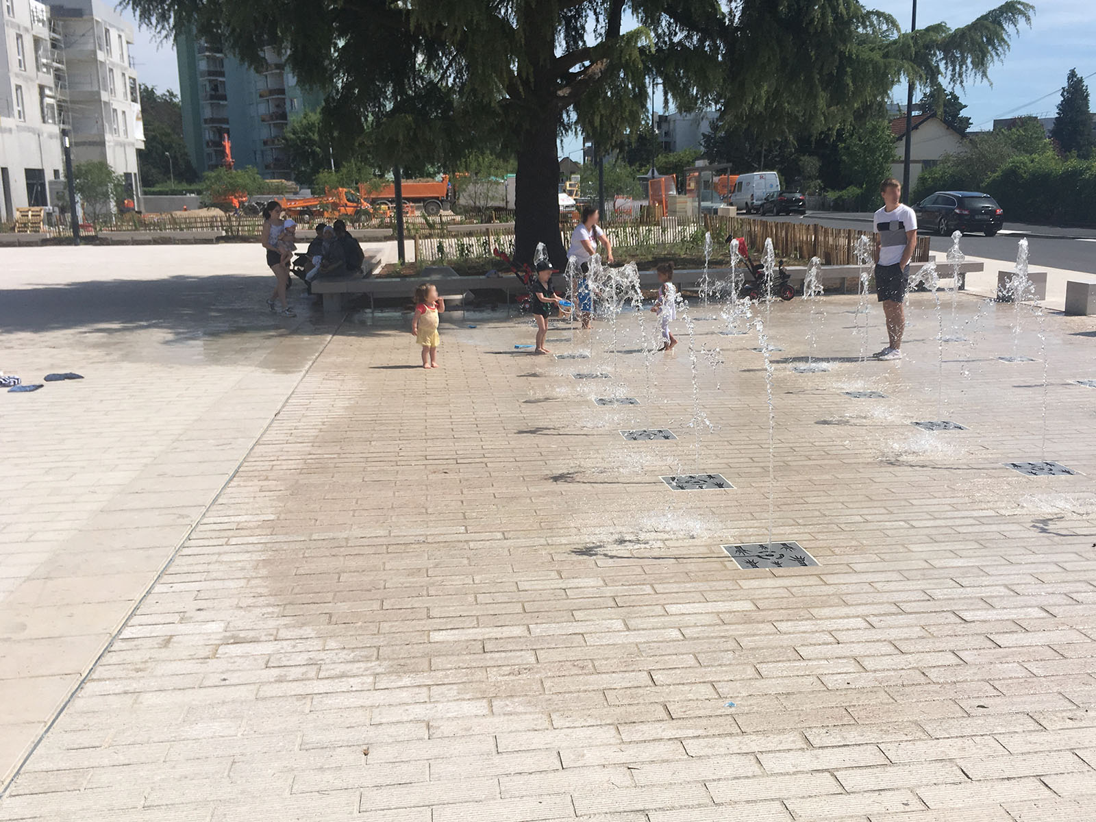 Des espaces de repos et de passage ont pris place, en dallage de comblanchien et pierres layées et bouchardées. De nombreux bancs ont été installés, en bois et en comblanchien, un mail a été dessiné, vingt arbres ont été plantés et vingt-quatre fontaines ont été créées. Le tout à l’ombre tutélaire du cèdre, préservé, qui domine la place.
