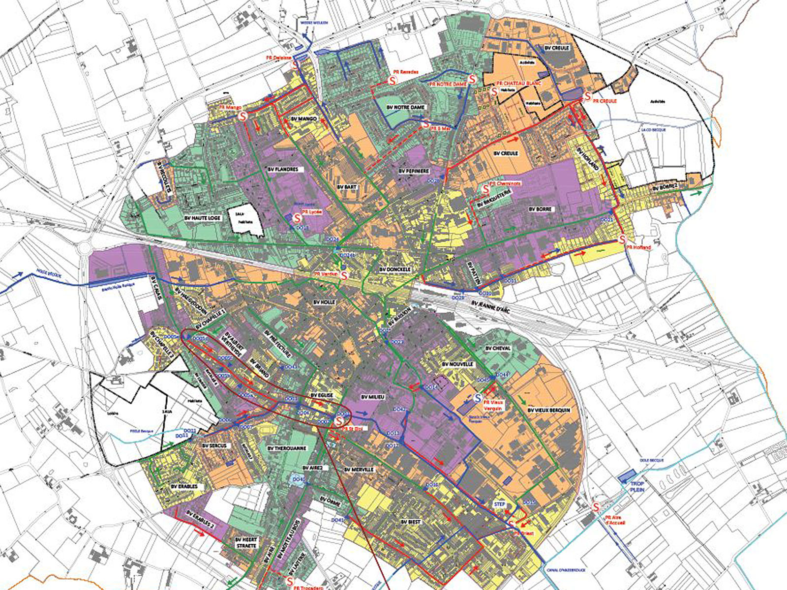 27 708 hab. | Station d'épuration 25 000 EH | 50 déversoirs d'orage | 16 postes de refoulement | 3 bassins tampon | Fossés de drainage