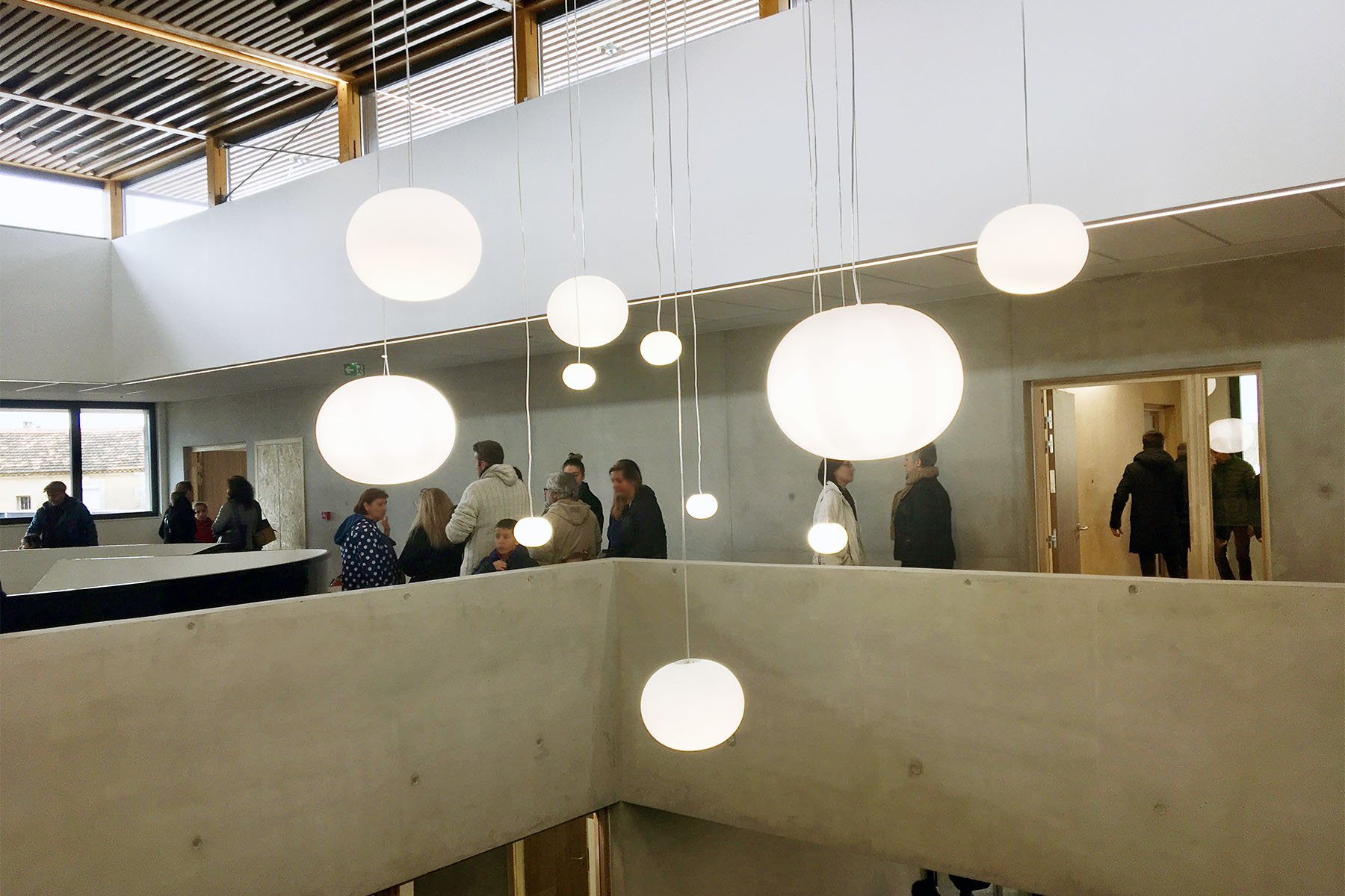 Ce nouvel espace s'ouvre sur un vaste hall d'accueil qui dessert d'un côté l'entrée du centre de loisirs et de l'autre l'accès au gymnase et à ses vestiaires. Prévu pour accueillir jusqu'à 300 enfants, le centre de loisirs s'articule autour de huit salles d'activités, trois dortoirs, une salle polyvalente de 100 m2 et plusieurs bureaux administratifs. A l'autre extrémité du bâtiment, le gymnase s'étend sur 800 m2.