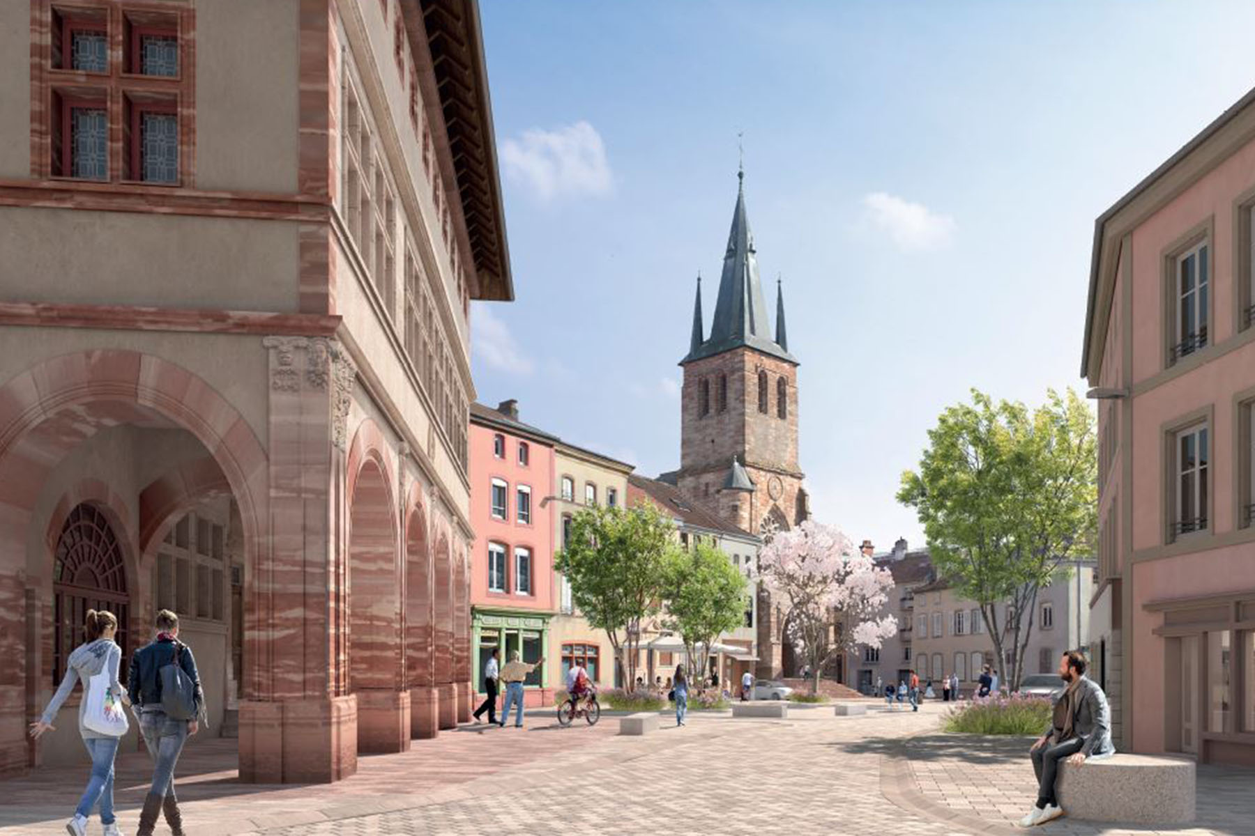 La requalification globale des espaces publics structurants dans le centre-bourg a pour objectif la promotion et la revitalisation de son cœur de ville. Il s'agit d'un enjeu urbain et patrimonial essentiel pour redonner place aux lieux.